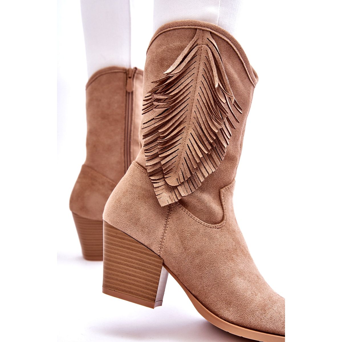 S.Barski S.Barski Botas cowboy femininas de camurça baixa com franjas, bege