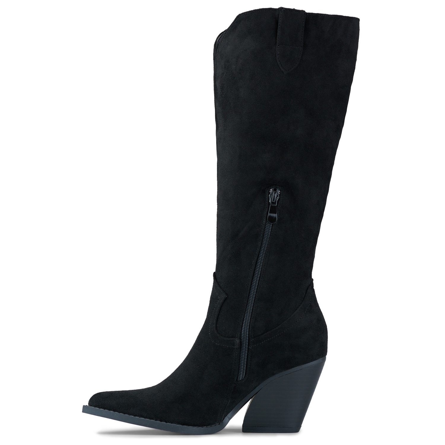 Detalhes: Botas cowboy femininas de camurça preta preto