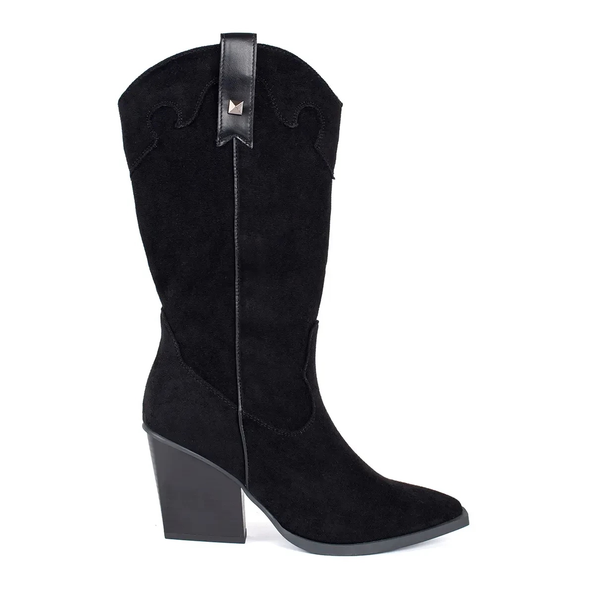 - Modelo: Botas cowboy femininas de camurça até a panturrilha