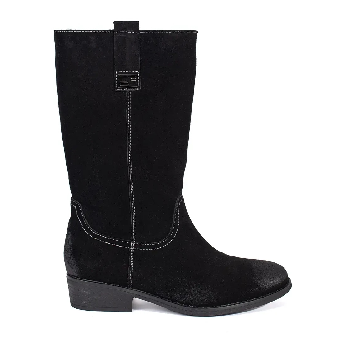 As botas Sergio Leone são finalizadas com um prendedor de zíper prático, o que facilita a saída e a decolagem. O nariz redondo e o salto construído também enfatizam seu caráter universal, e a largura do superior de 38 cm os faz se adaptar a diferentes tipos de pernas. Com um salto de 3,5 cm de altura, que é estável e confortável, essas botas são ideais para estilizações cotidianas, tanto para saias e calças.