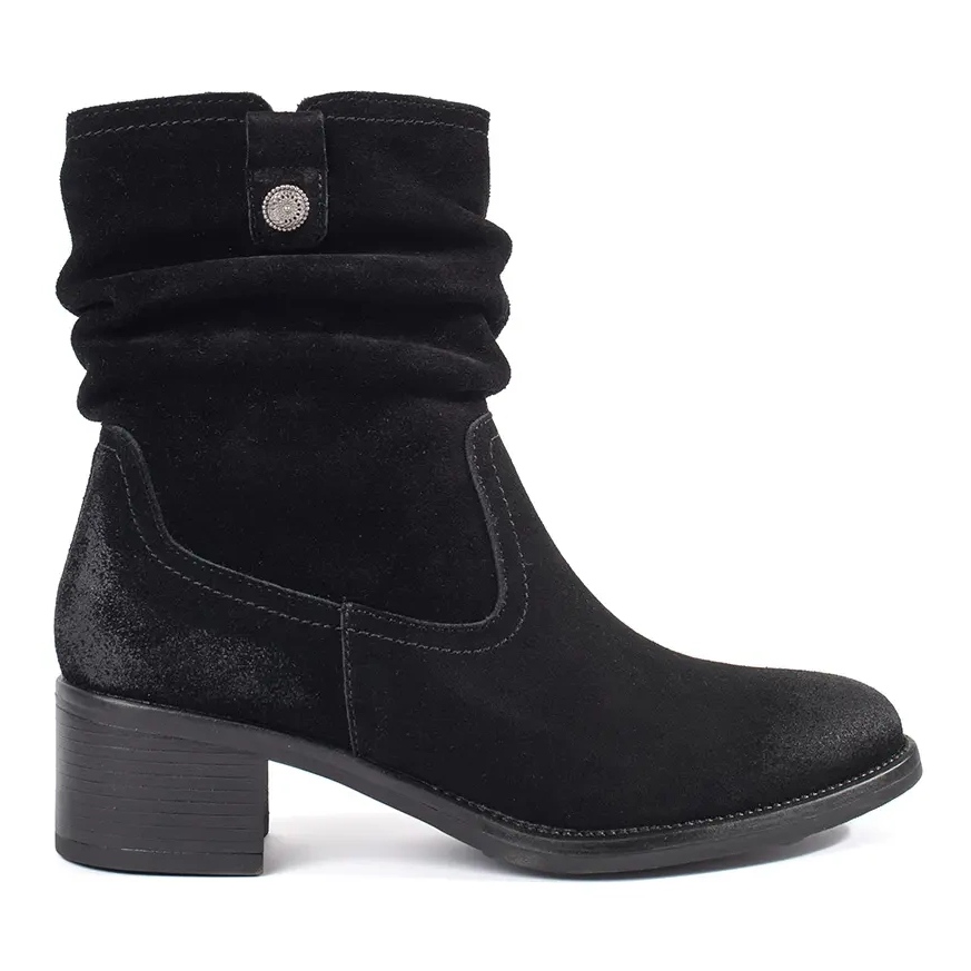 As botas de cowboy de couro preto de Sergio Leone são uma combinação perfeita de estilo, conforto e funcionalidade. Feito de couro de camurça natural de alta qualidade, essas botas são perfeitas para estilizações diárias e para ocasiões especiais. Um nariz redondo e um salto plano com uma altura de 5 cm garantem o conforto de usar o dia todo, e o salto construído estabiliza o pé.