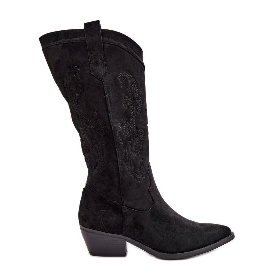 Detalhes: Botas cowboy femininas de salto baixo em camurça ecológica preta Ligelia preto