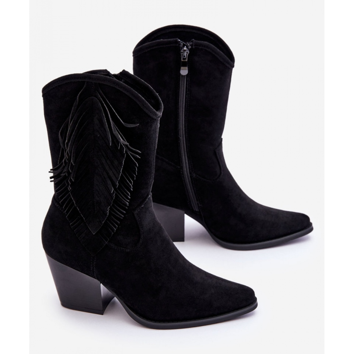 Detalhes: Step in style Botas cowboy Modelo Elyse HY51-88 Camurça Preta - Entre com estilo preto