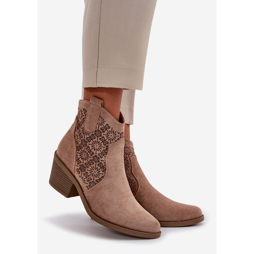 Descubra a elegância e o conforto, graças às botas de cowboy do OpenWork para um castelo da marca S. Barski. Feito de camurça eco suave, essas botas bege combinam estilo e conforto, o que os torna a escolha perfeita para dias mais quentes. A parte superior do OpenWork lhes dá leveza, e um salto estável de 6,5 cm fornece um equilíbrio perfeito entre conforto e elegância.