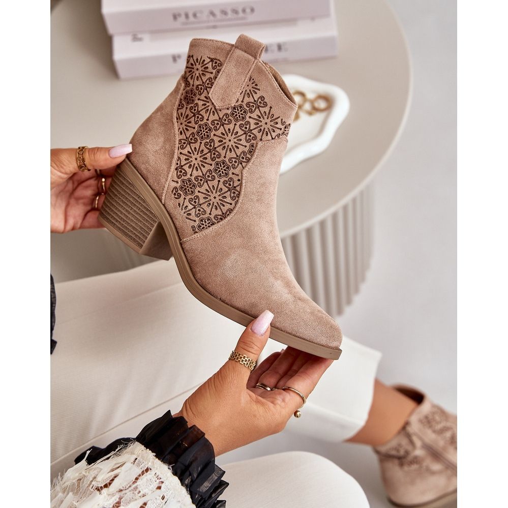 Detalhes: Botas Cowboy Openwork Com Zíper Eco Camurça Bege S.Barski HY42-944