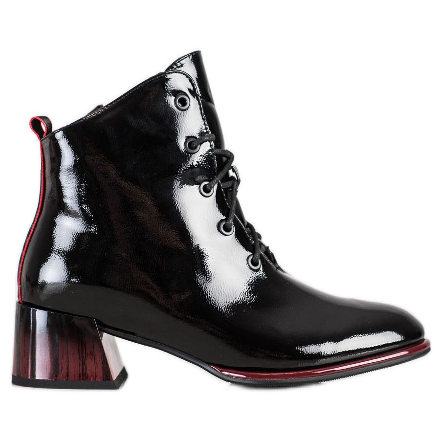 Graças à biqueira redonda e ao fecho com cadarço, estas botas oferecem excelente ajuste e conforto de uso. Além disso, o seu design elegante com acabamento lacado torna-os na escolha perfeita para uma variedade de ocasiões - desde passeios diários a festas noturnas e celebrações.