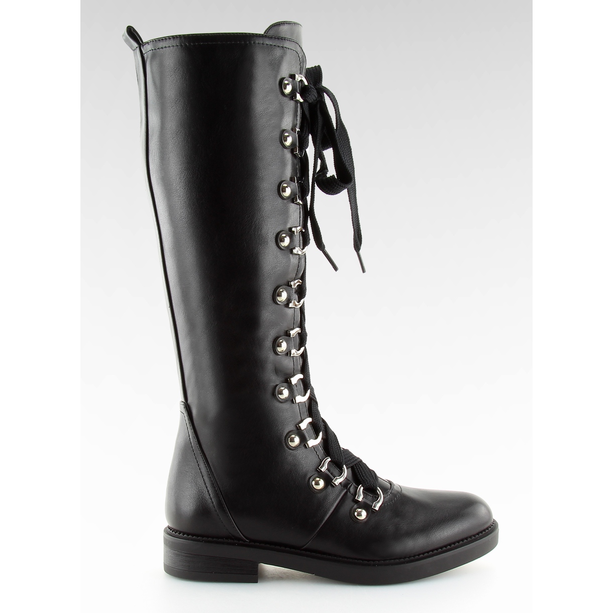 NC281 Botas pretas com cadarço - botas pretas clássicas para mulheres autoconfiantes
