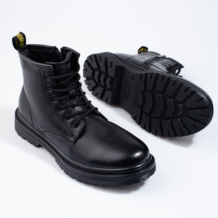 Detalhes: SHELOVET Botas de caminhada de couro eco pretas de homem preto