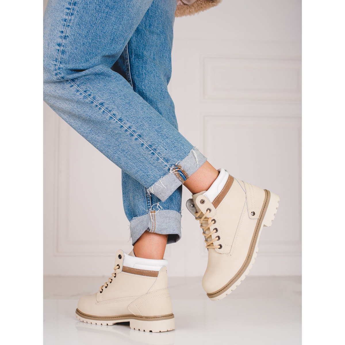 Detalhes: Botas de caminhada de pele de mulher DK bege