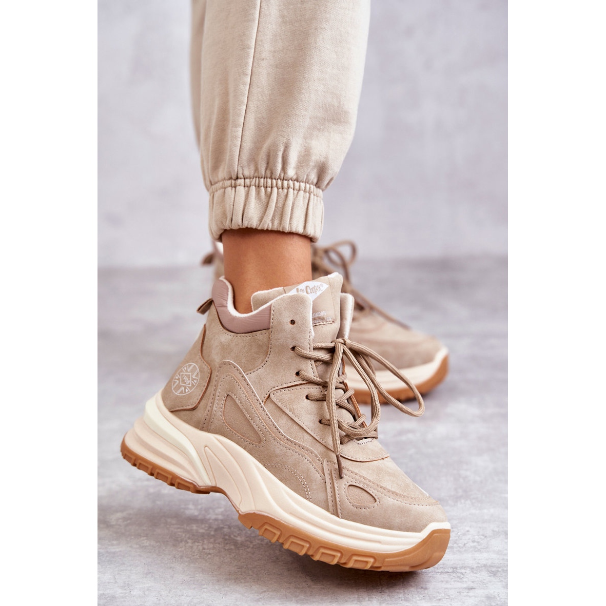 Detalhes: Botas de caminhada na plataforma Lee Cooper LCJ-22-44-1352L Bege