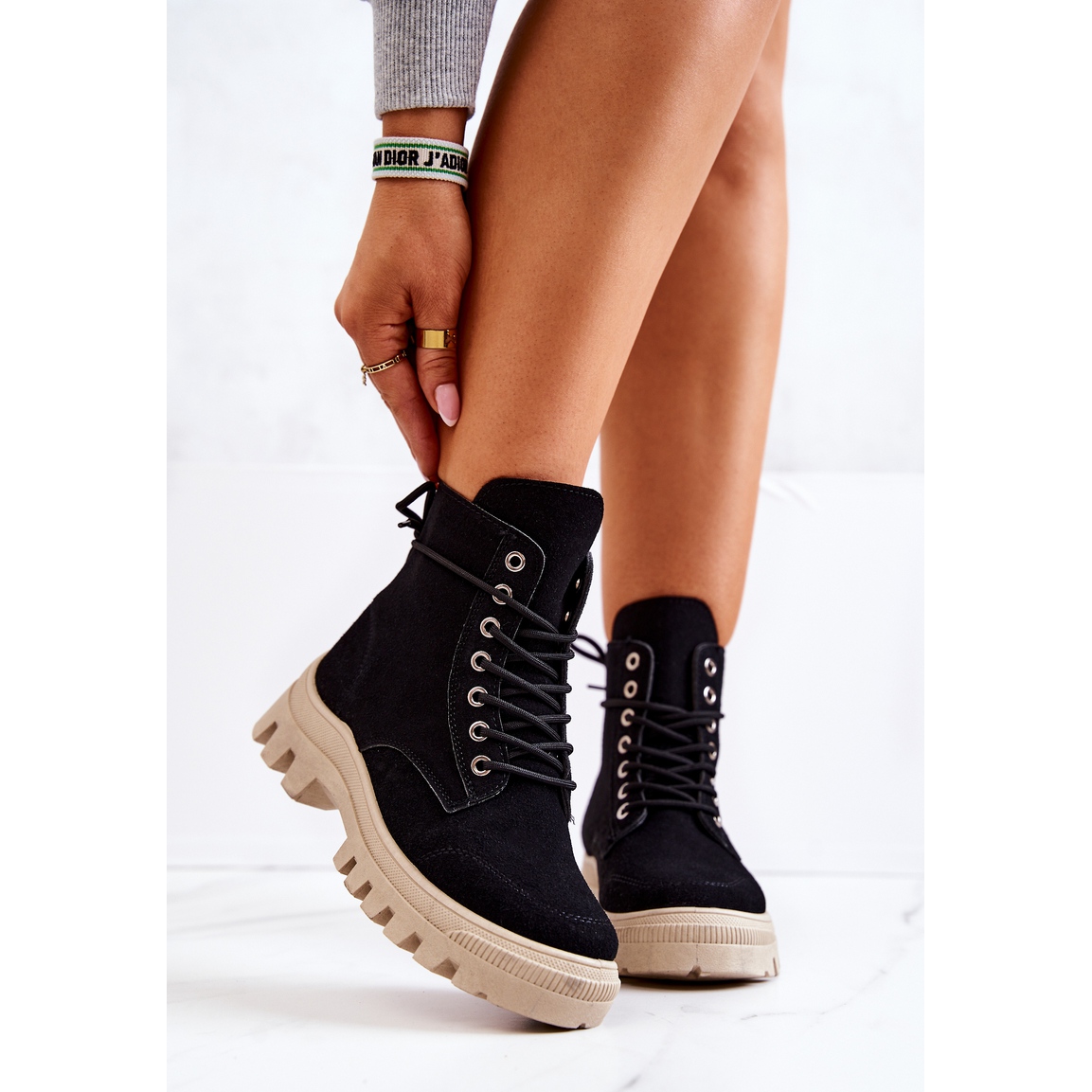 PS1 PS1 Botas de camurça amarradas pretas furacão preto