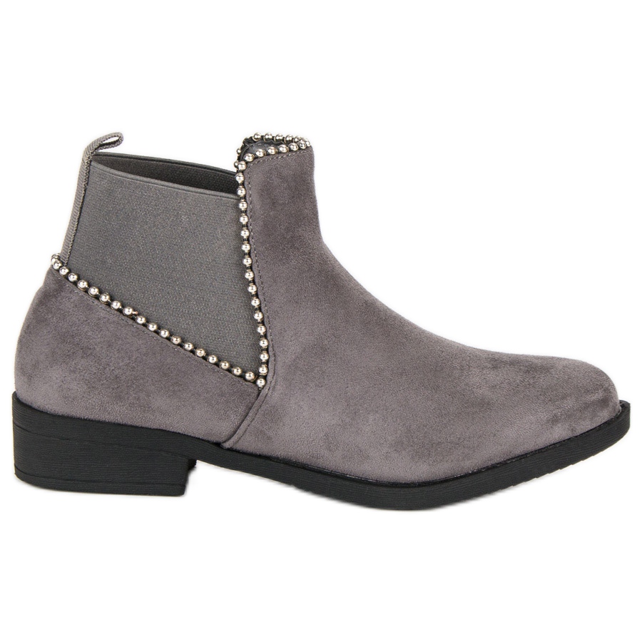 As botas Chelsea de camurça cinza se destacam pela aparência original e formato interessante. As decorações em forma de delicados cristais acrescentam elegância e tornam cada estilo único. Por serem feitas de materiais de alta qualidade, essas decorações manterão o brilho por muito tempo.