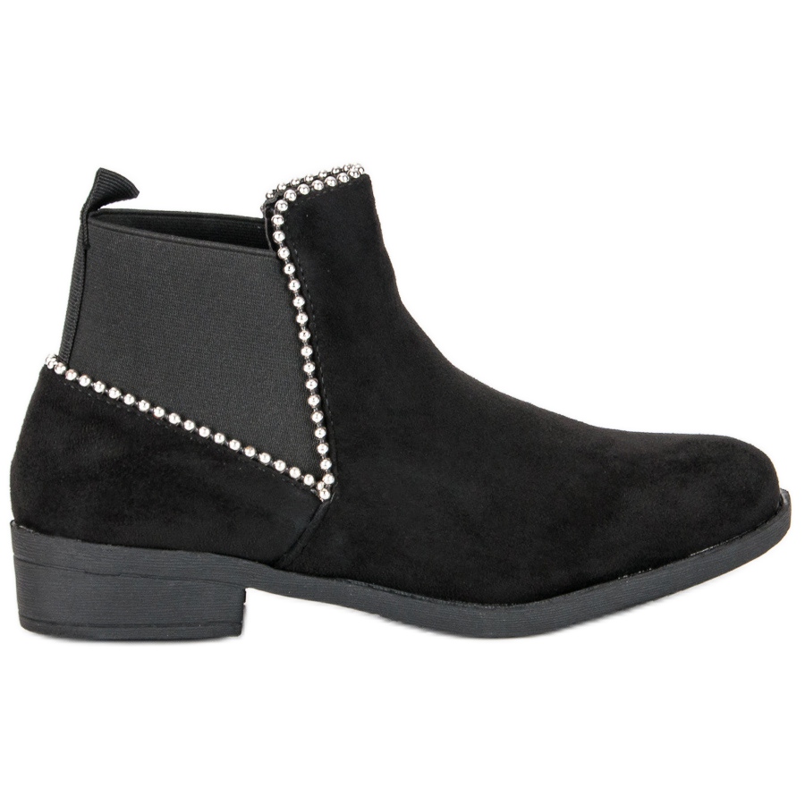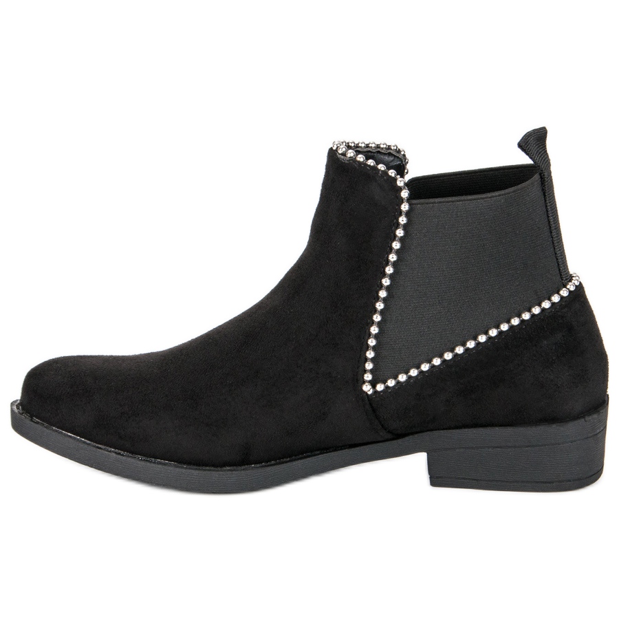 Descubra a perfeição num clássico com as nossas botas Chelsea de camurça preta que combinam conforto com design moderno. Estes elegantes sapatos de sola plana, decorados com delicados strass e um original elástico nas costas, são perfeitos tanto para o uso diário como para passeios noturnos.