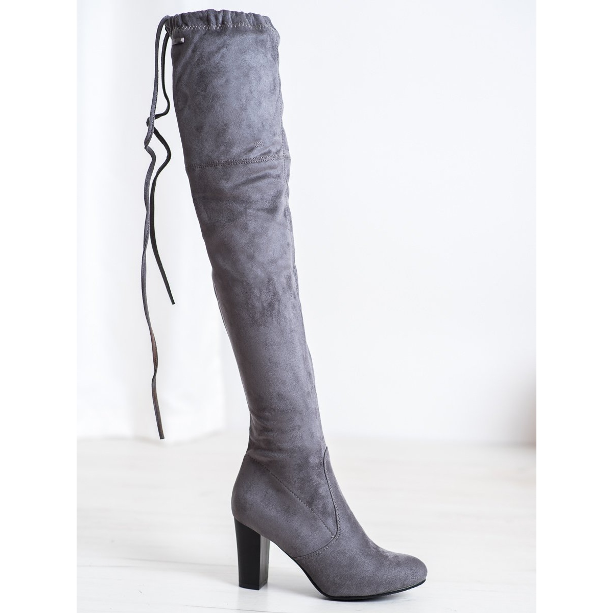 As botas de camurça cinza SHELOVET são a escolha perfeita para toda mulher que deseja aliar conforto à elegância. Estas botas clássicas acima do joelho encantam não só pela sua aparência moderna, mas também pelo acabamento cuidadoso com materiais de alta qualidade. A parte externa do calçado é em imitação de camurça, o que lhe confere um caráter único, e a palmilha interna em couro ecológico garante conforto de uso.