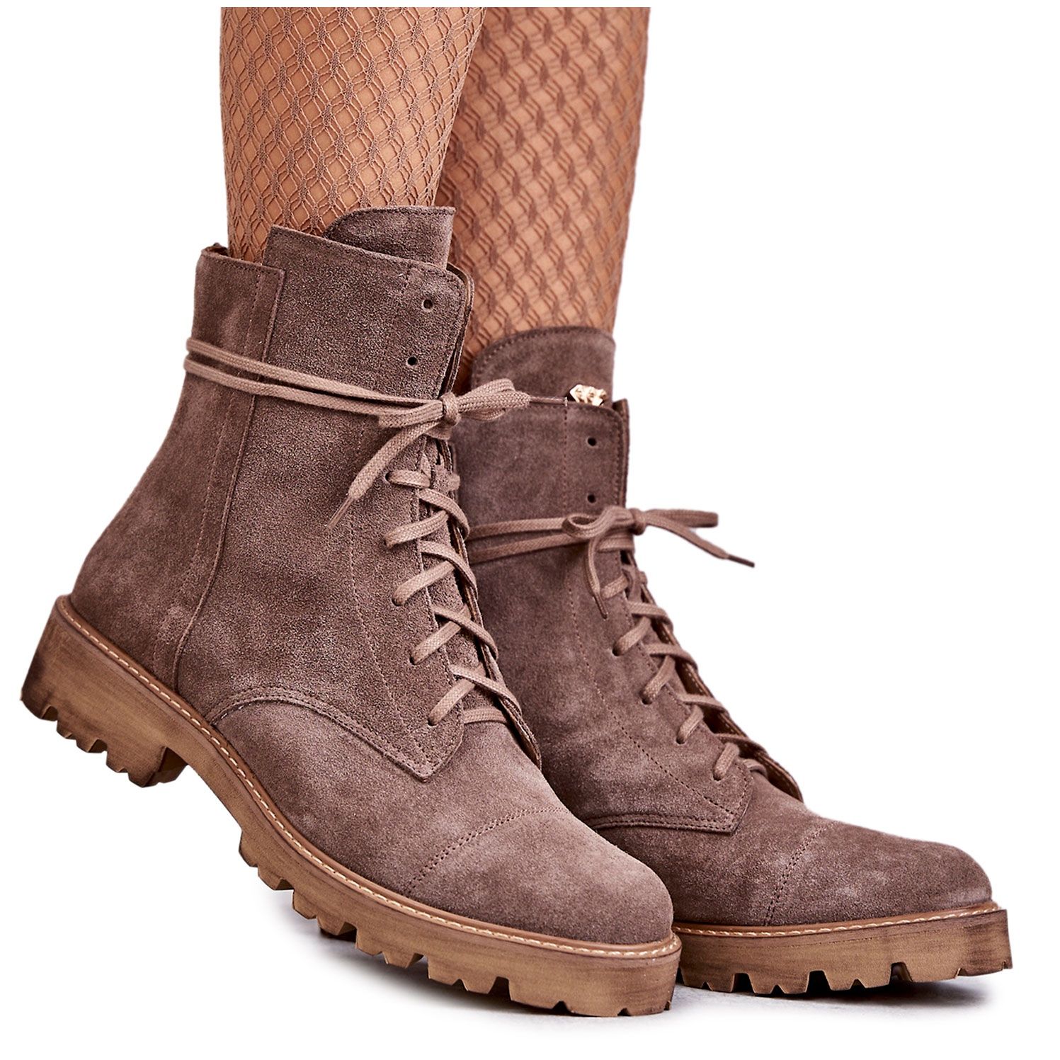 Botas femininas elegantes e atemporais feitas de couro natural de alta qualidade (camurça). O corte clássico de corte, costura delicada na parte superior e a combinação prática de amarrar com o castelo na parte traseira, tornam o modelo elegante e conveniente de usar. Uma sola enorme e não deslizante e um conforto baixo e estável no calcanhar está com o uso diário.