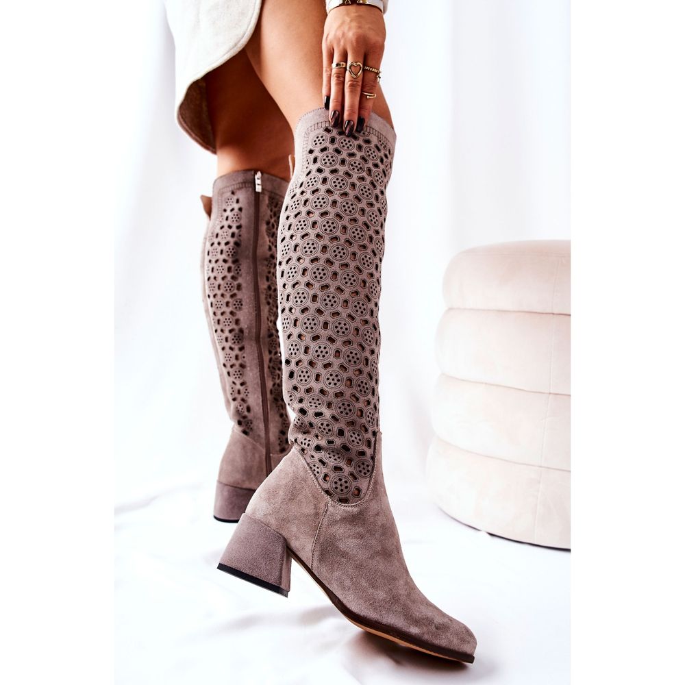 Detalhes: PA2 Botas de camurça com padrão aberto, Hekilea marrom claro castanho