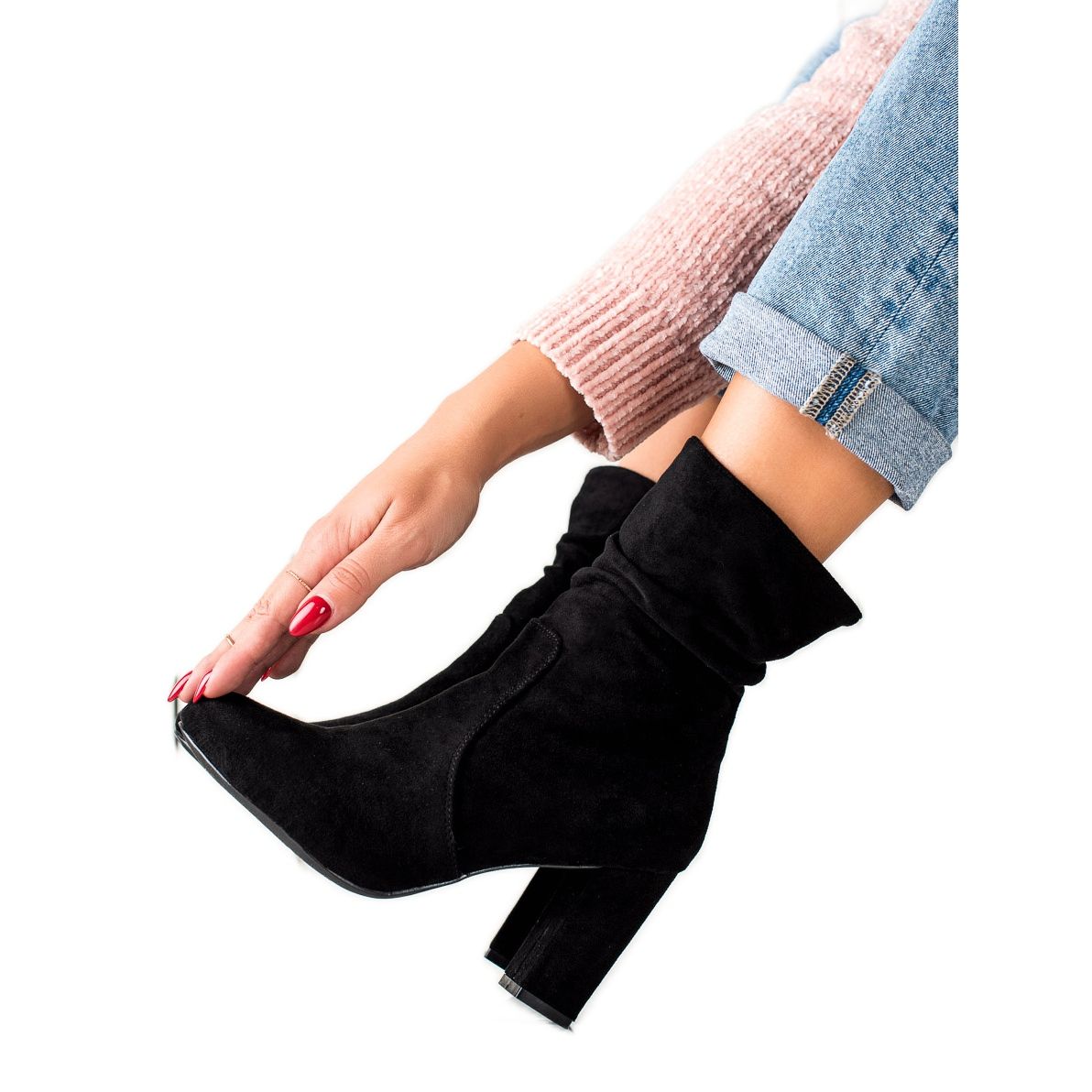 As botas foram pensadas para mulheres que valorizam conforto e elegância. Confeccionados em imitação de camurça de alta qualidade, caracterizam-se por salto reforçado e reforçado e biqueira redonda, o que garante conforto adicional no uso. A largura superior de 26 cm e a altura de 17 cm ajustam-se perfeitamente à perna, e a altura do salto de 8,5 cm confere elegância e classe a qualquer estilo.