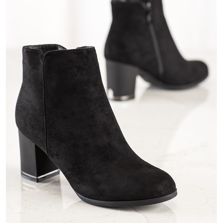 Os botins Janessa em camurça preta são a escolha perfeita para mulheres que valorizam o conforto aliado à elegância. Confeccionados em couro ecológico de alta qualidade imitando camurça, esses sapatos possuem salto fosco de 7 cm de altura que garante estabilidade e conforto de uso. O contraforte do calcanhar é fechado e reforçado, o que aumenta ainda mais o conforto e valoriza o estilo clássico do calçado.