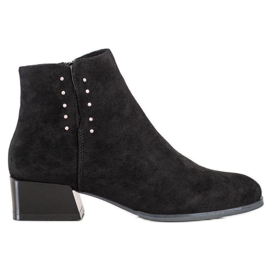 Os botins pretos Sergio Leone se diferenciam pelos detalhes sutis - charmosos strass e strass que lhes conferem um brilho característico. Um zíper lateral facilita a colocação e a retirada, e o material interno em tecido garante conforto durante todo o dia.