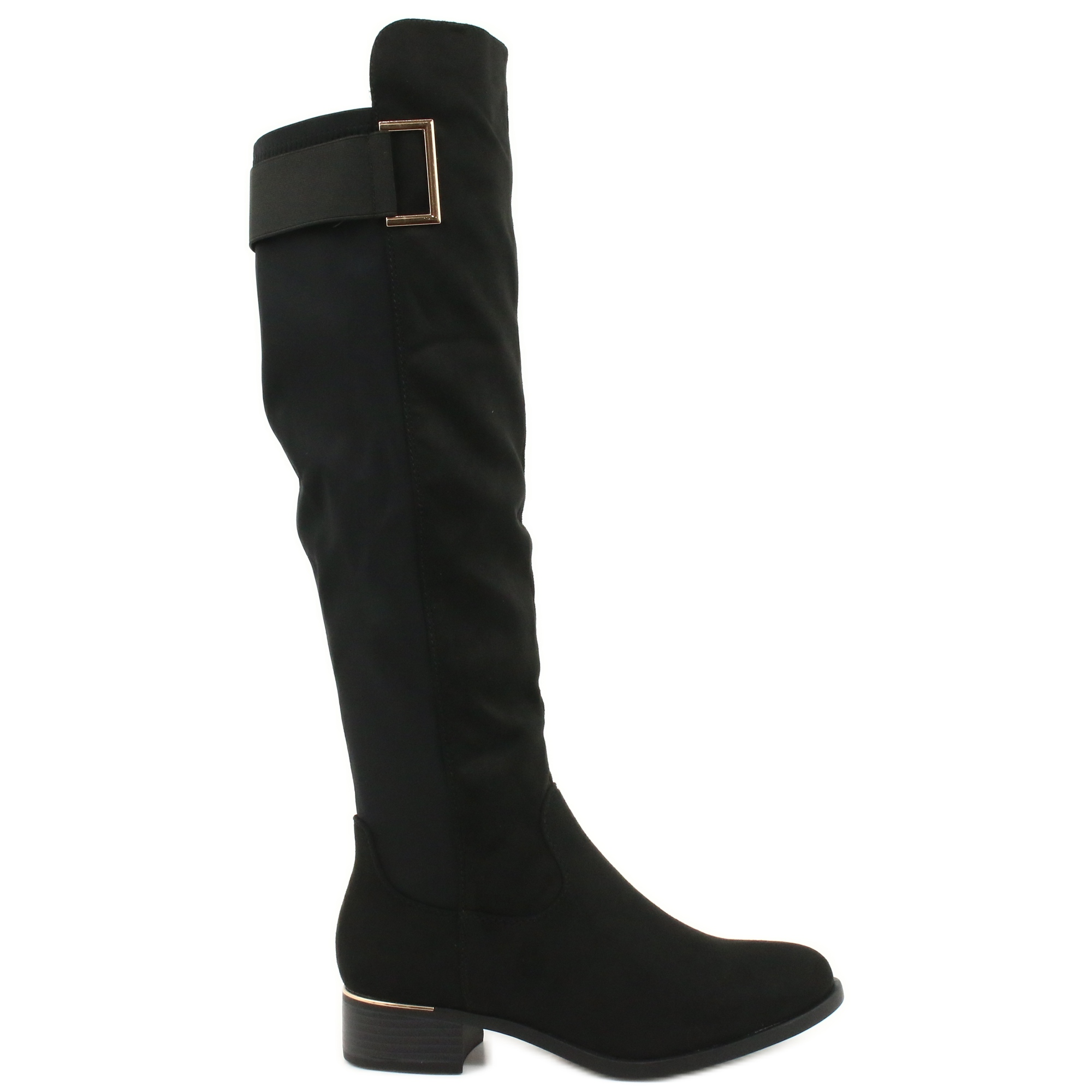 Detalhes: Evento Botas de camurça de fivela dourada preto