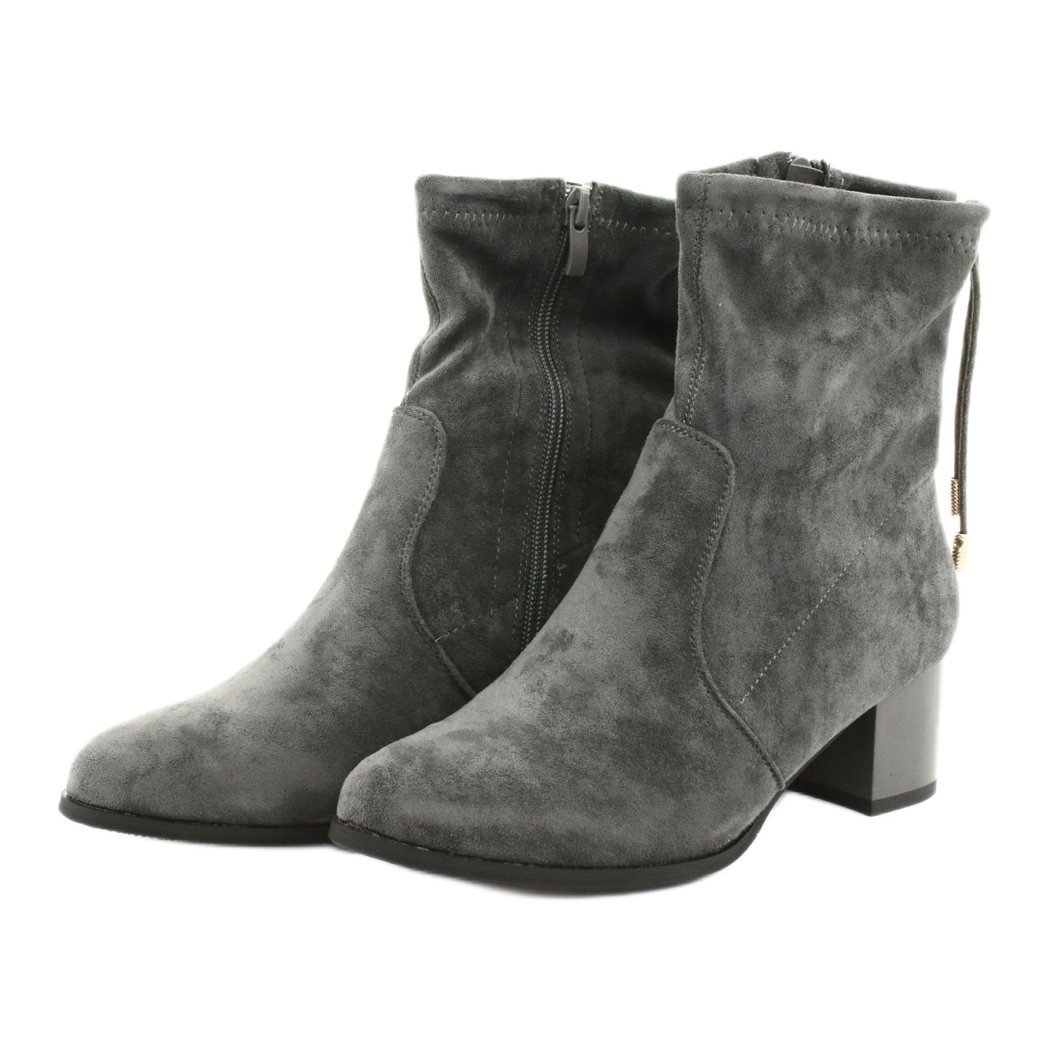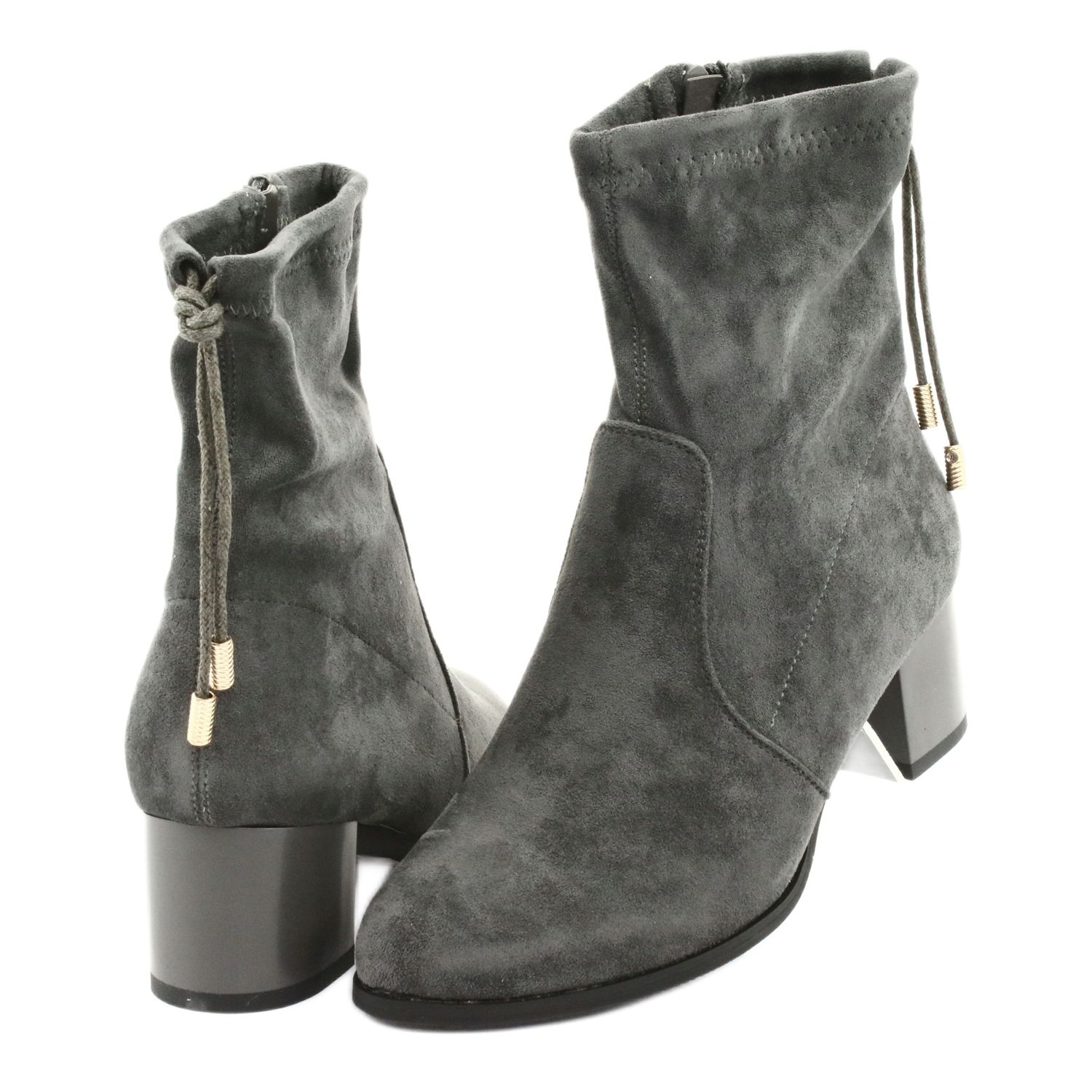 Apresentamos os botins de salto alto em camurça cinzenta Daszyński SA58, que são uma combinação perfeita entre clássico e elegância, o que faz com que toda fashionista os tenha na sua coleção. Estes elegantes botins femininos combinam perfeitamente com estilos formais e quotidianos, constituindo um elemento versátil do guarda-roupa.