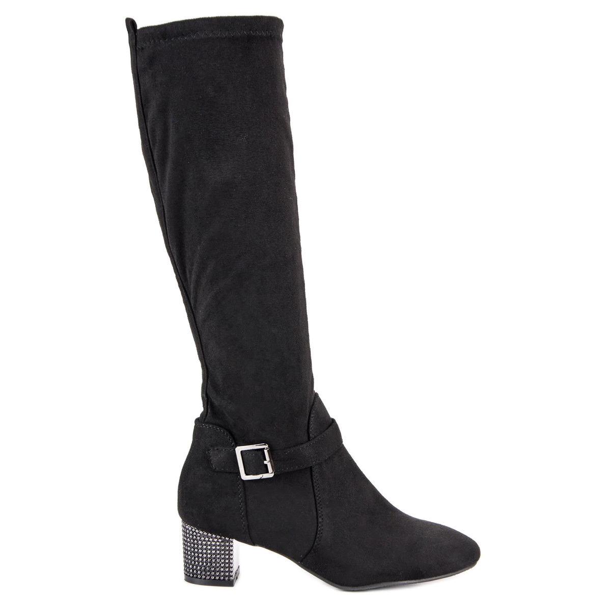 Botas que chegam logo acima do joelho não são apenas elegantes, mas também extremamente versáteis. Combinam perfeitamente com vestidos e saias, o que os torna a solução ideal para diversas ocasiões - desde passeios do dia a dia até festas elegantes. Além disso, a fivela decorativa e os strass conferem-lhes um carácter moderno que os distingue dos restantes modelos.