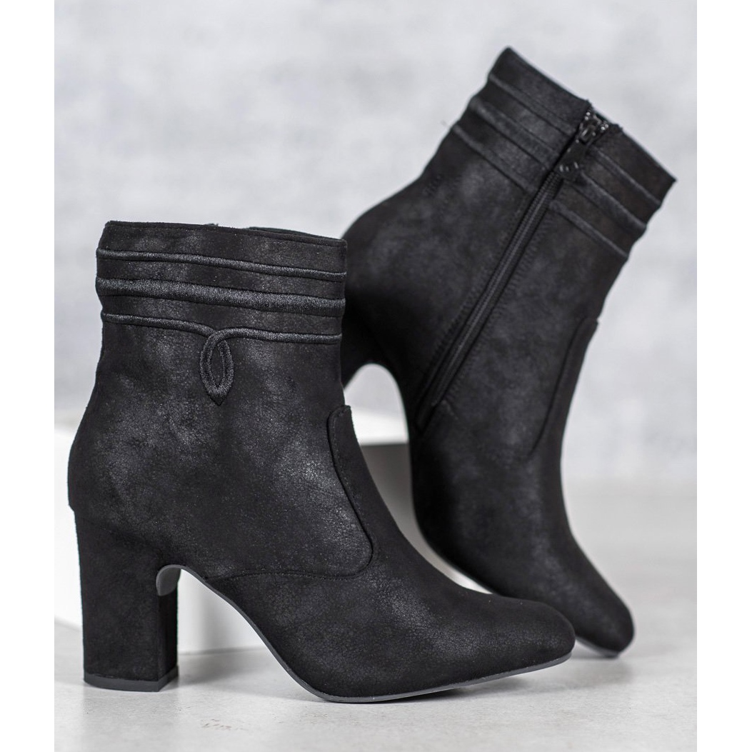 Descubra elegância e conforto com botins Kylie Suede de salto alto na cor preta atemporal. Estes sapatos sensuais são a proposta perfeita para mulheres que apreciam o design clássico e a atenção aos detalhes. O salto alto de 8 cm e o espigão sólido garantem estabilidade e conforto, mesmo quando usados por muito tempo.