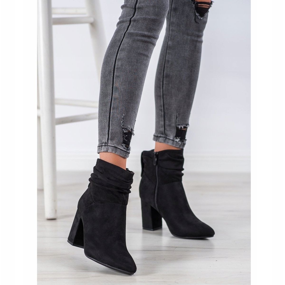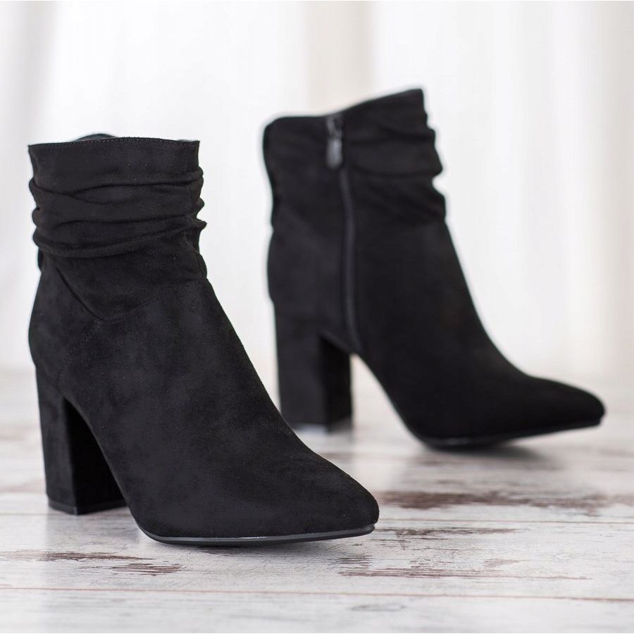 Os botins pretos de salto alto da marca Shelovet são obrigatórios no guarda-roupa de toda mulher, principalmente no outono-inverno. Seu design elegante, porém discreto, os torna perfeitos para estilos do dia a dia e mais formais. Confeccionados em couro camurça ecológico de alta qualidade, combinam conforto e visual fashion.