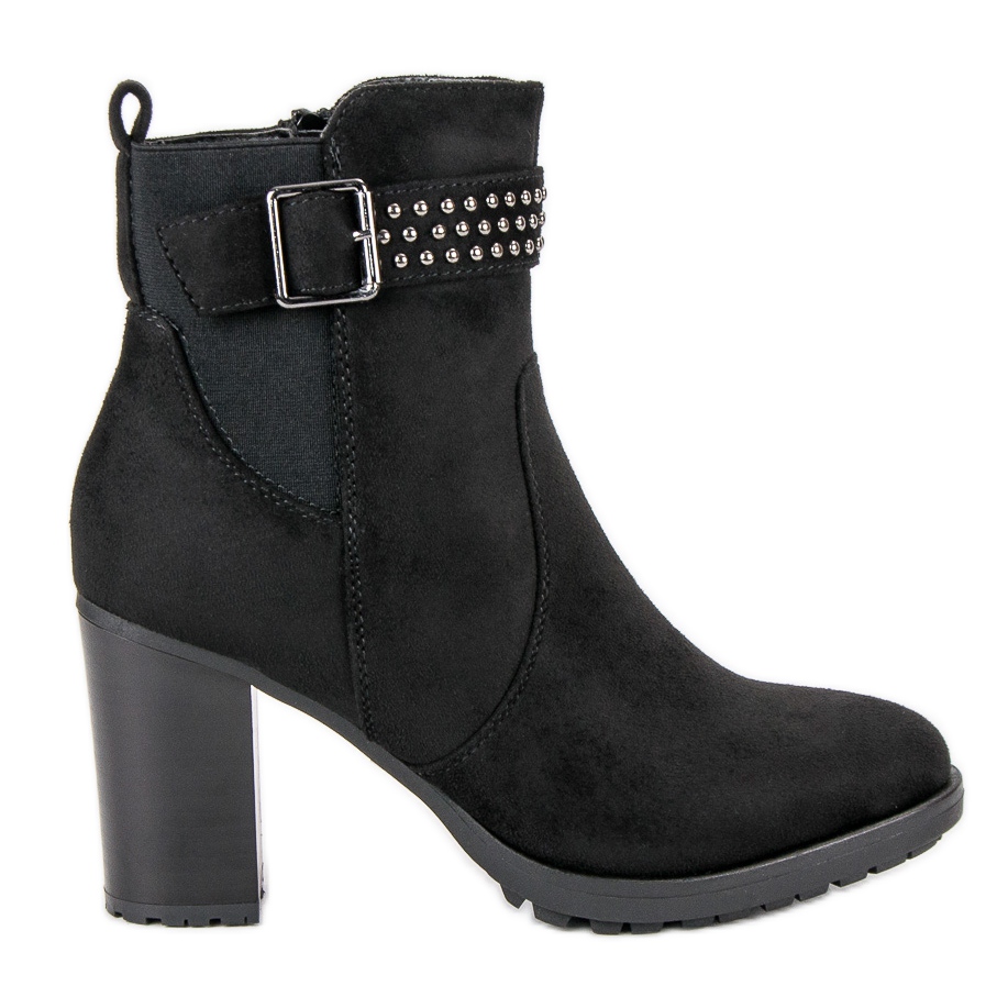 Uma vantagem adicional das botas é um cinto decorativo com fivela, decorado com strass brilhantes, que lhes confere um caráter único. Graças ao isolamento, os seus pés ficarão confortáveis mesmo nos dias mais frios. A biqueira redonda e a sola sintética garantem estabilidade, e o visual moderno faz com que essas botas atraiam a atenção.