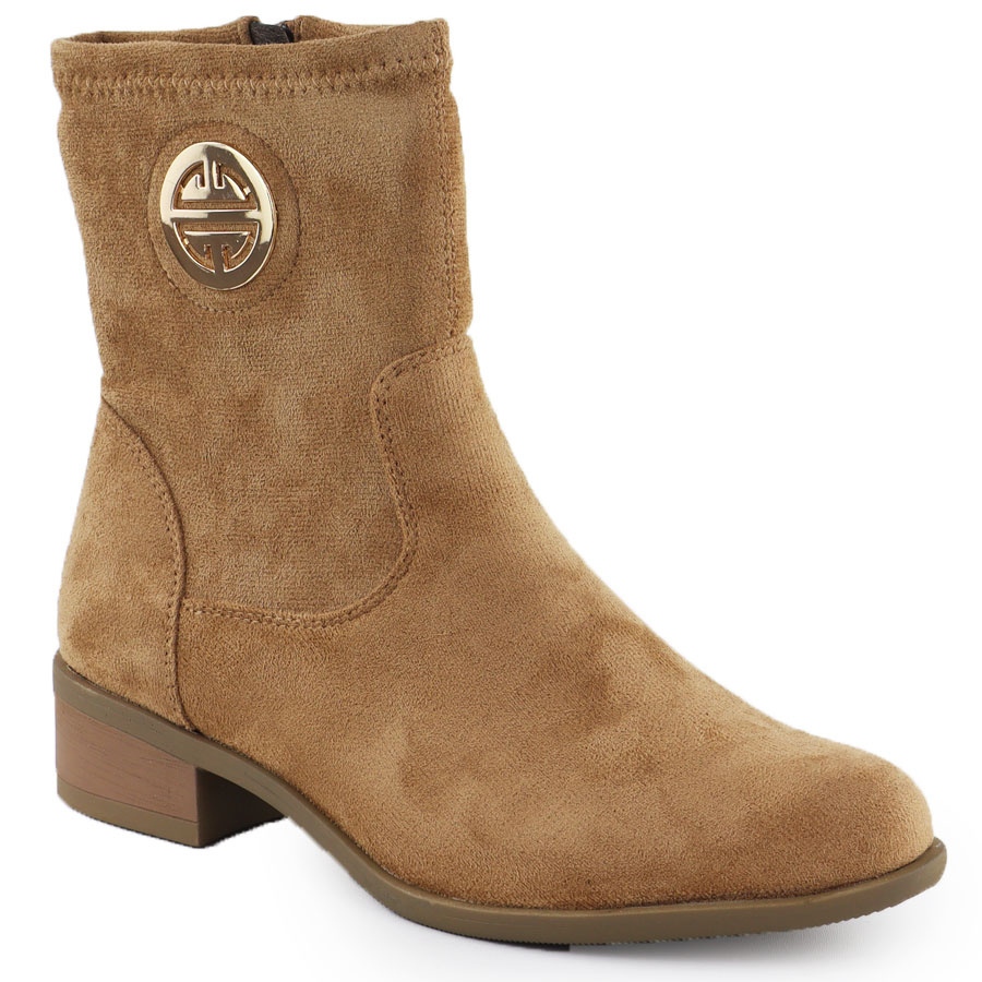 Jezzi Botas de camurça feminina com decoração bege jezzi 198-28