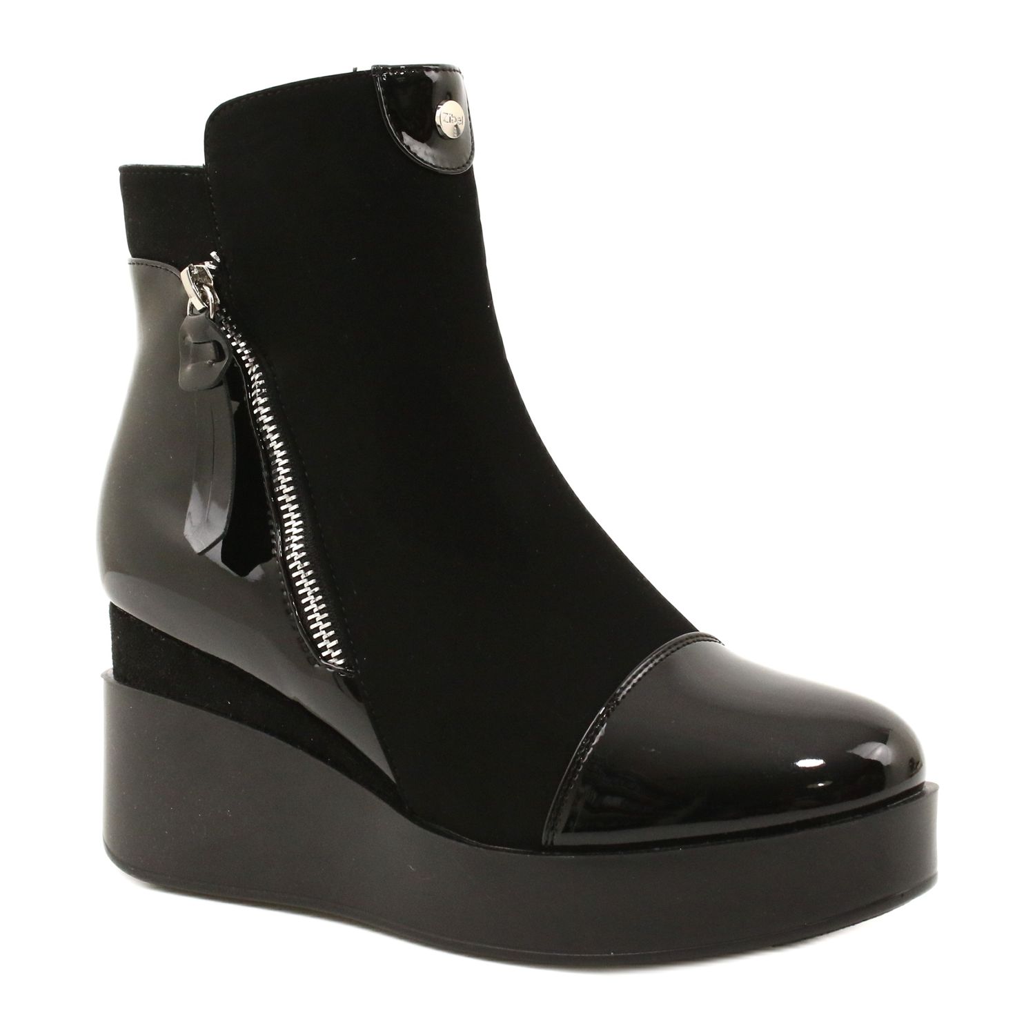 Descubra as mais recentes botas femininas do H2180 que o deliciarão com seu design e com conforto! Essas botas de camurça preta em uma cunha e uma plataforma grossa são a escolha perfeita para qualquer ocasião - tanto para estilos diários quanto mais elegantes.