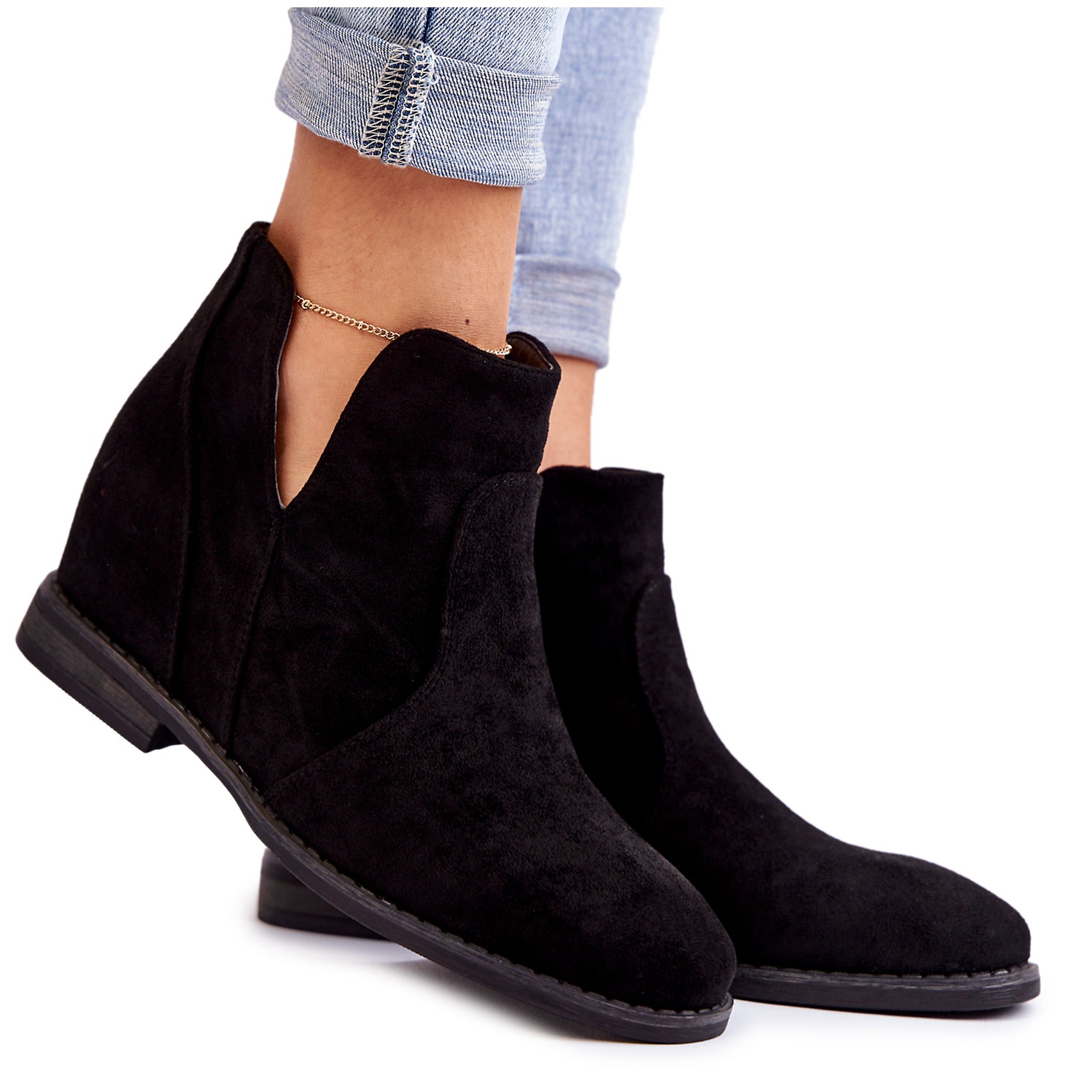 - Modelo: Botinhas de camurça com recortes