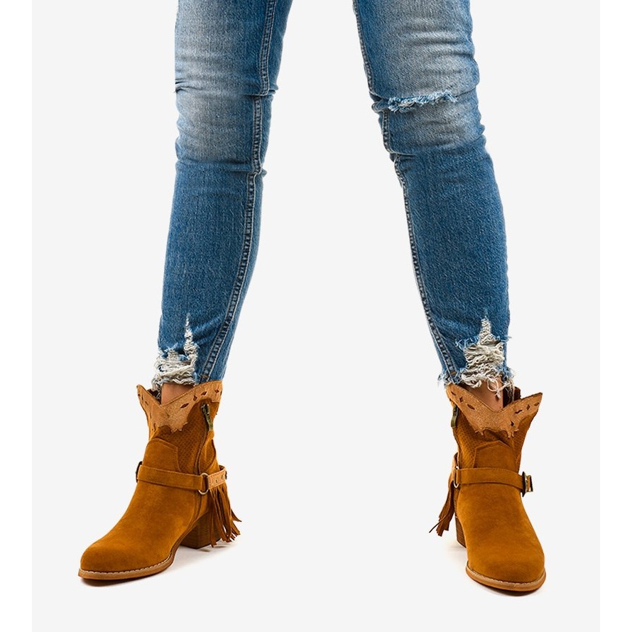 Graças à sua cor castanha combinam perfeitamente tanto com jeans como com vestidos. O interior do calçado é forrado em tecido, o que aumenta o conforto de uso. Estes botins de camurça vão certamente tornar-se um elemento preferido do seu guarda-roupa, combinando perfeitamente com as tendências deste ano. Além disso, são embalados em uma elegante caixa do fabricante, o que os torna uma ótima ideia para presente.