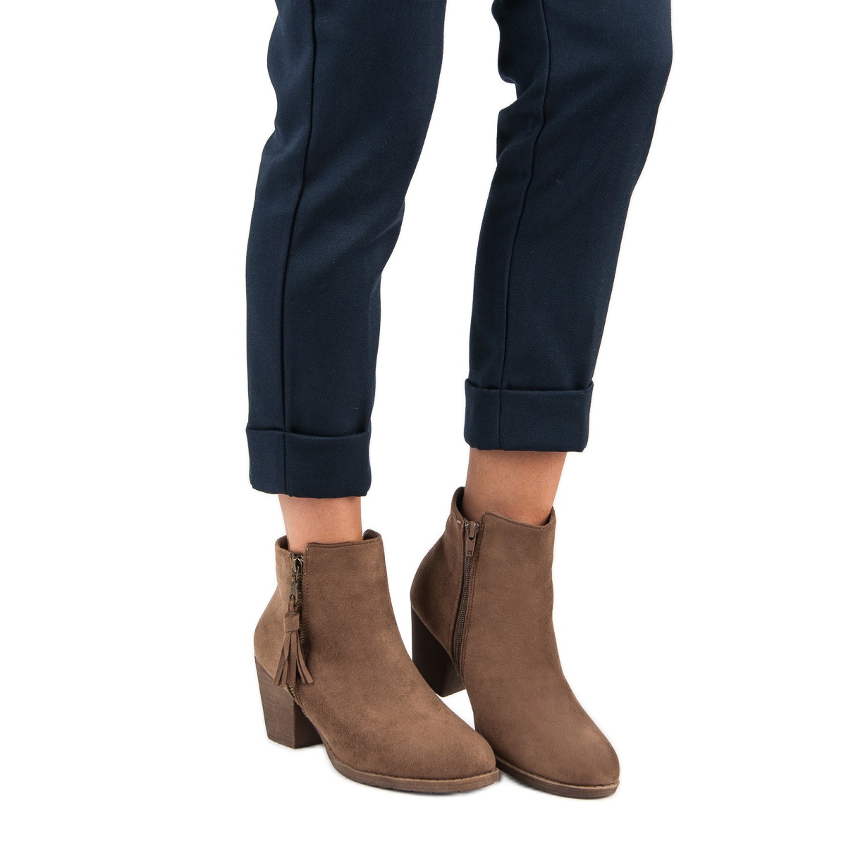 Os botins de camurça castanha são a escolha perfeita para mulheres que procuram uma combinação de elegância e estilo do dia a dia. Confeccionados em camurça ecológica de alta qualidade, nos modernos tons de marrom e bege, são o complemento perfeito para qualquer estilo de outono e inverno.