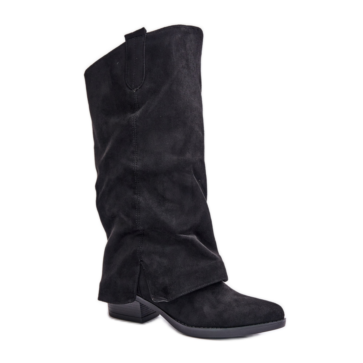 Apresentamos o modelo de boots de camurça cowboy em preto - a escolha perfeita para todas as mulheres da moda! Feito de camurça ecológica de alta qualidade, essas botas combinam estilo com conforto. Situado em um salto baixo e estável com uma altura de 5,5 cm, eles proporcionam conforto durante o desgaste do dia inteiro.