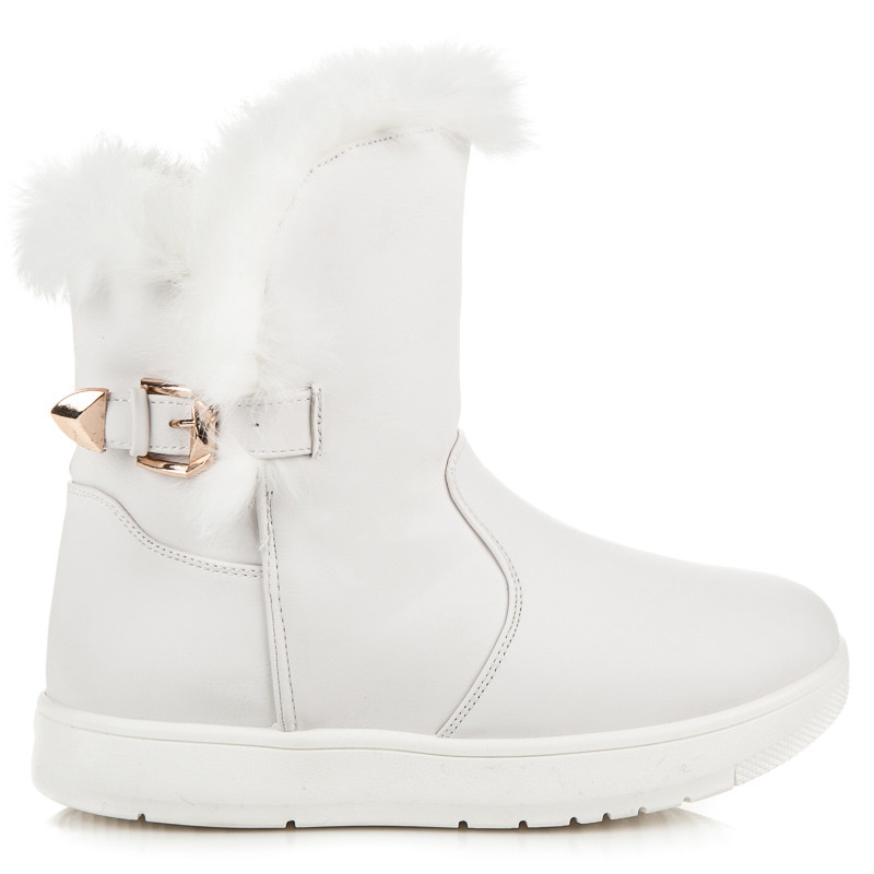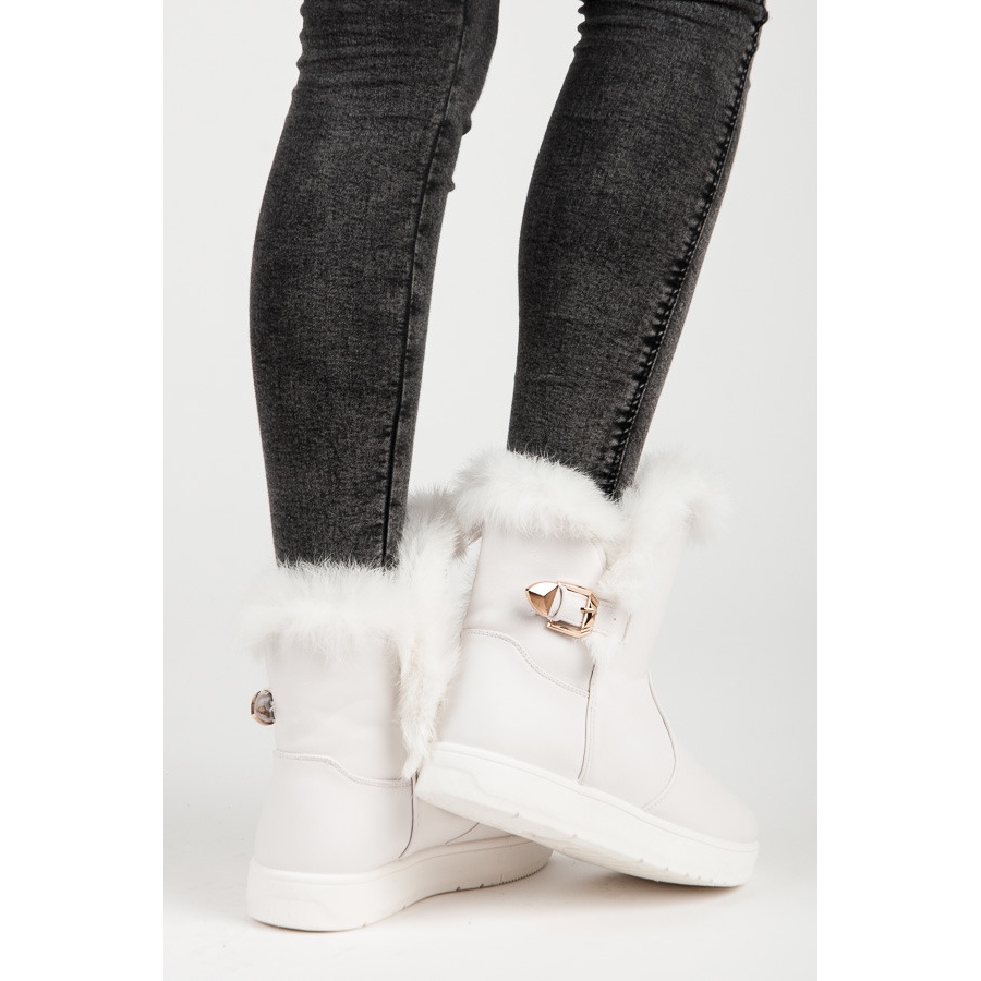 Apresentamos botas de neve em camurça branca de uma marca conceituada, que são a solução perfeita para os dias de inverno. Estes sapatos femininos elegantes e modernos combinam alta funcionalidade com um visual moderno. Feitos em couro camurça ecológico, têm uma ótima aparência e são ecologicamente corretos.