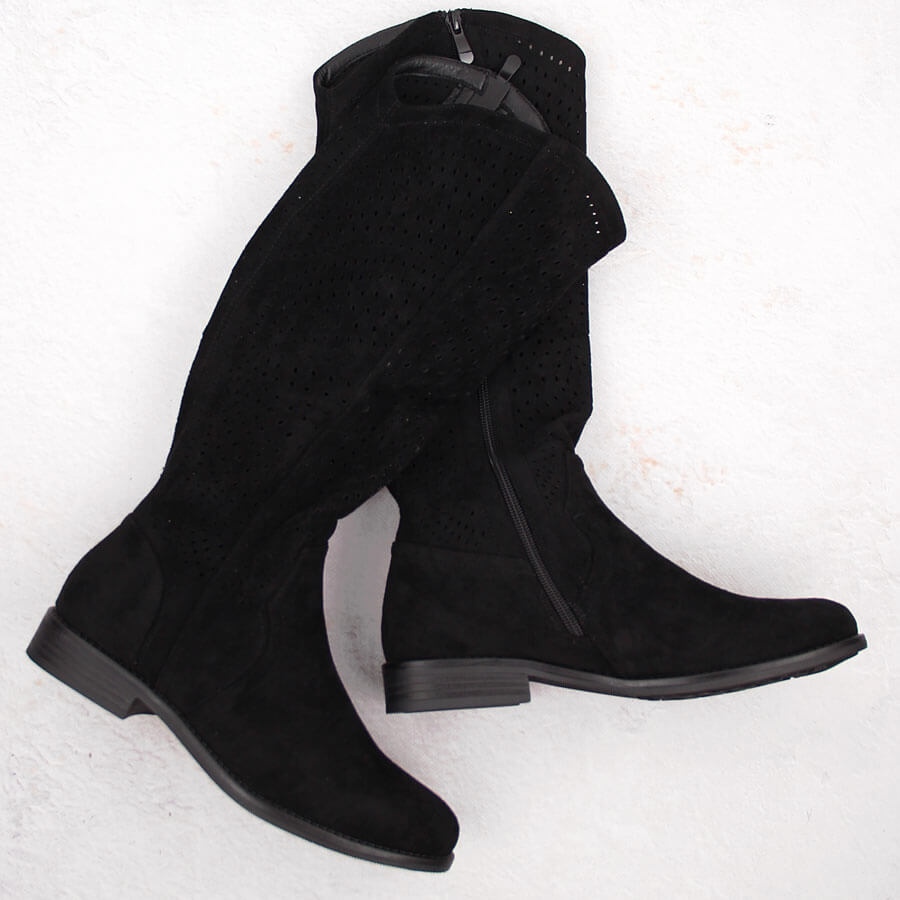 Detalhes: Botas de camurça preta com aberturas S.Barski HY66-150 preto