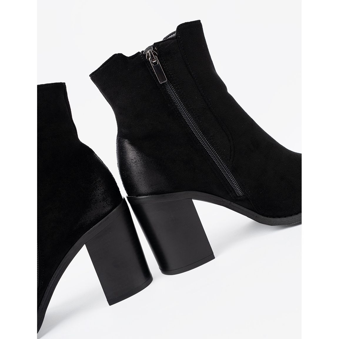 Projetado para conforto, as botas têm um salto construído e um nariz redondo, o que as torna elegantes e confortáveis. O salto alto com uma altura de 8,5 cm garante a estabilidade ideal, e o desempenho do couro ecológico de camurça adiciona um personagem luxuoso. Graças ao aquecimento, seus pés serão protegidos do frio, o que é extremamente importante nos dias de inverno.