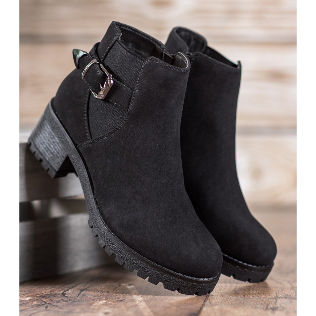 Os botins femininos J. Star são a combinação perfeita de estilo e conforto que farão de cada passo um prazer. Confeccionados em couro camurça ecológico de alta qualidade, estes elegantes sapatos na clássica cor preta cabem perfeitamente em qualquer guarda-roupa.