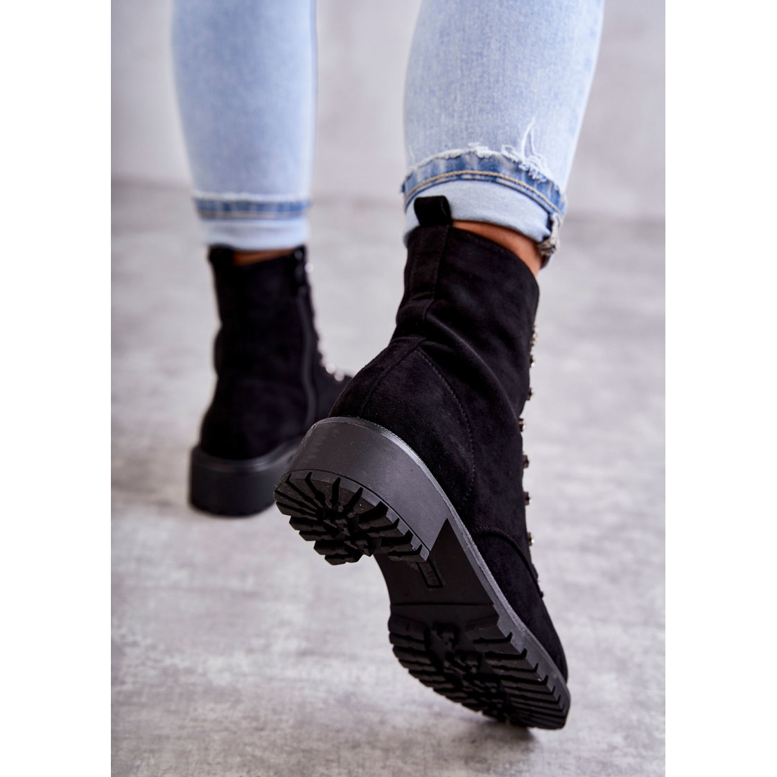 **PG1 Botins Camurça Com Alças Decorativas Preto Malesia**