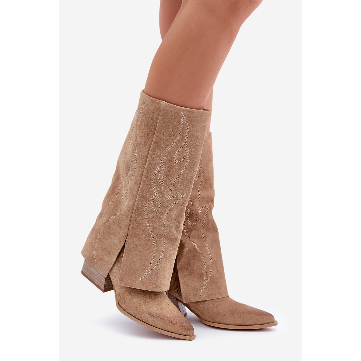 Zazoo Botas de cano médio em camurça com salto superior virado bege Zazoo 3487