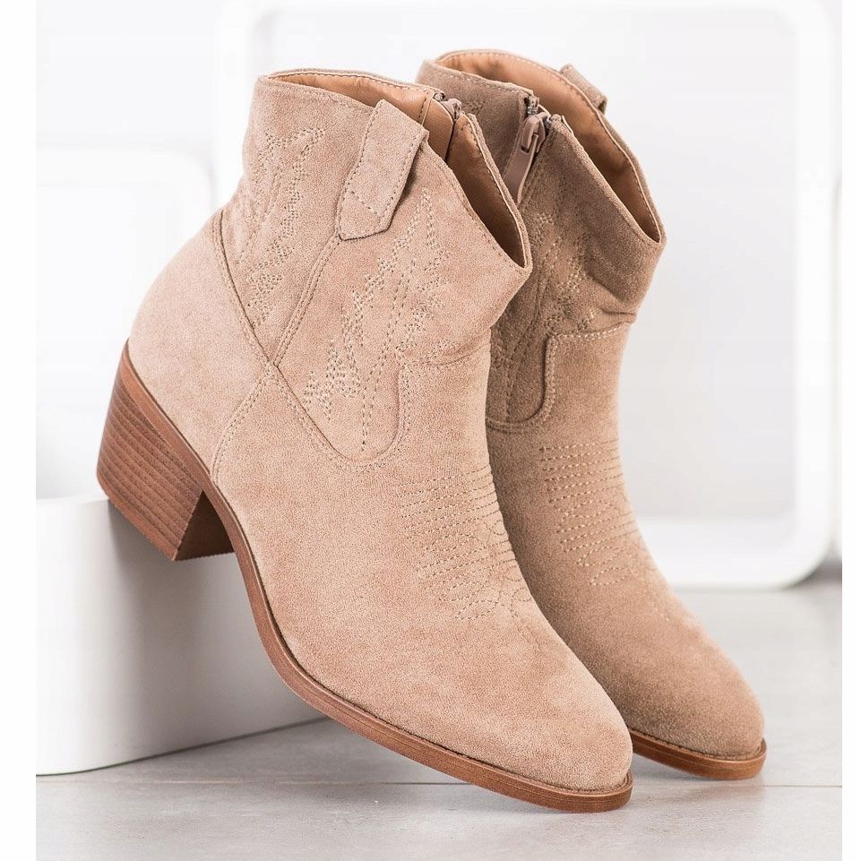 Detalhes: Cm Paris Botas de caubói elegantes de camurça bege