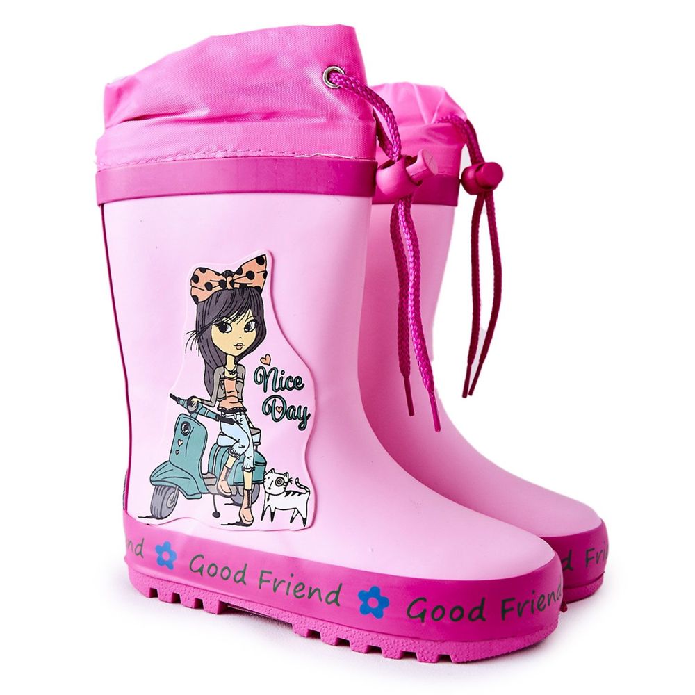 Detalhes: Botas de chuva de borracha para crianças menina heilee rosa