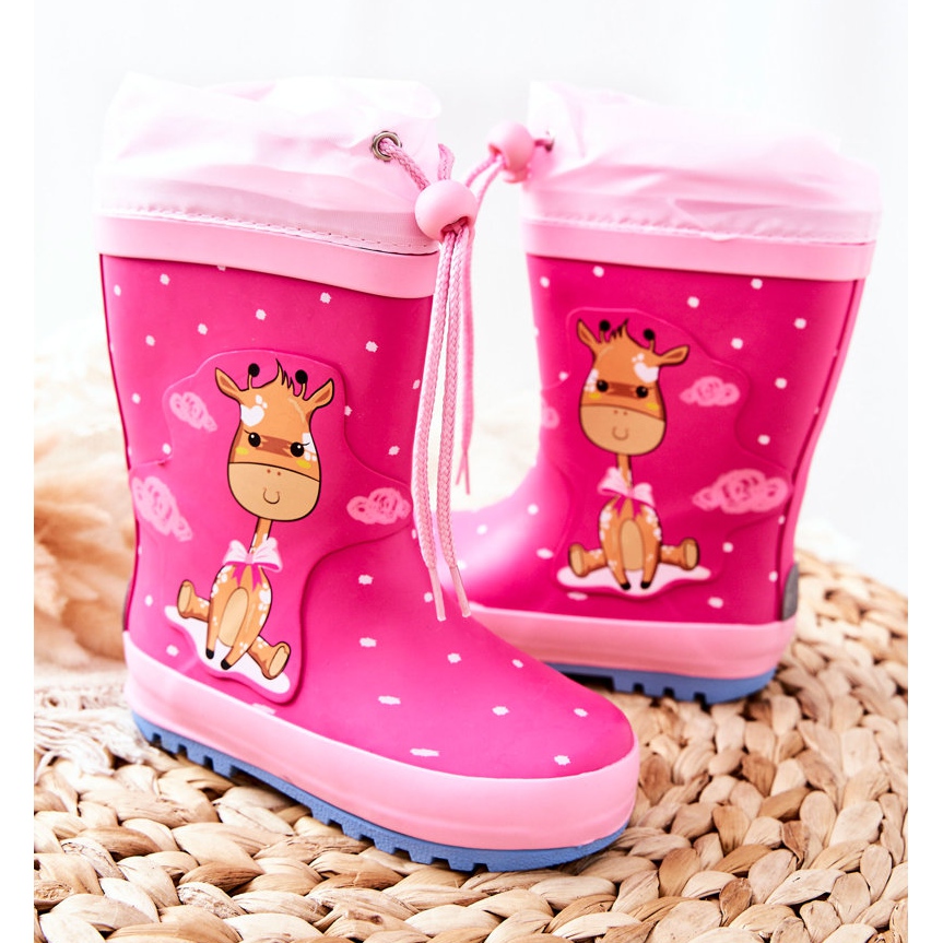 Detalhes: Botas de chuva infantis de borracha Fuchsia Glynnal Giraffe rosa