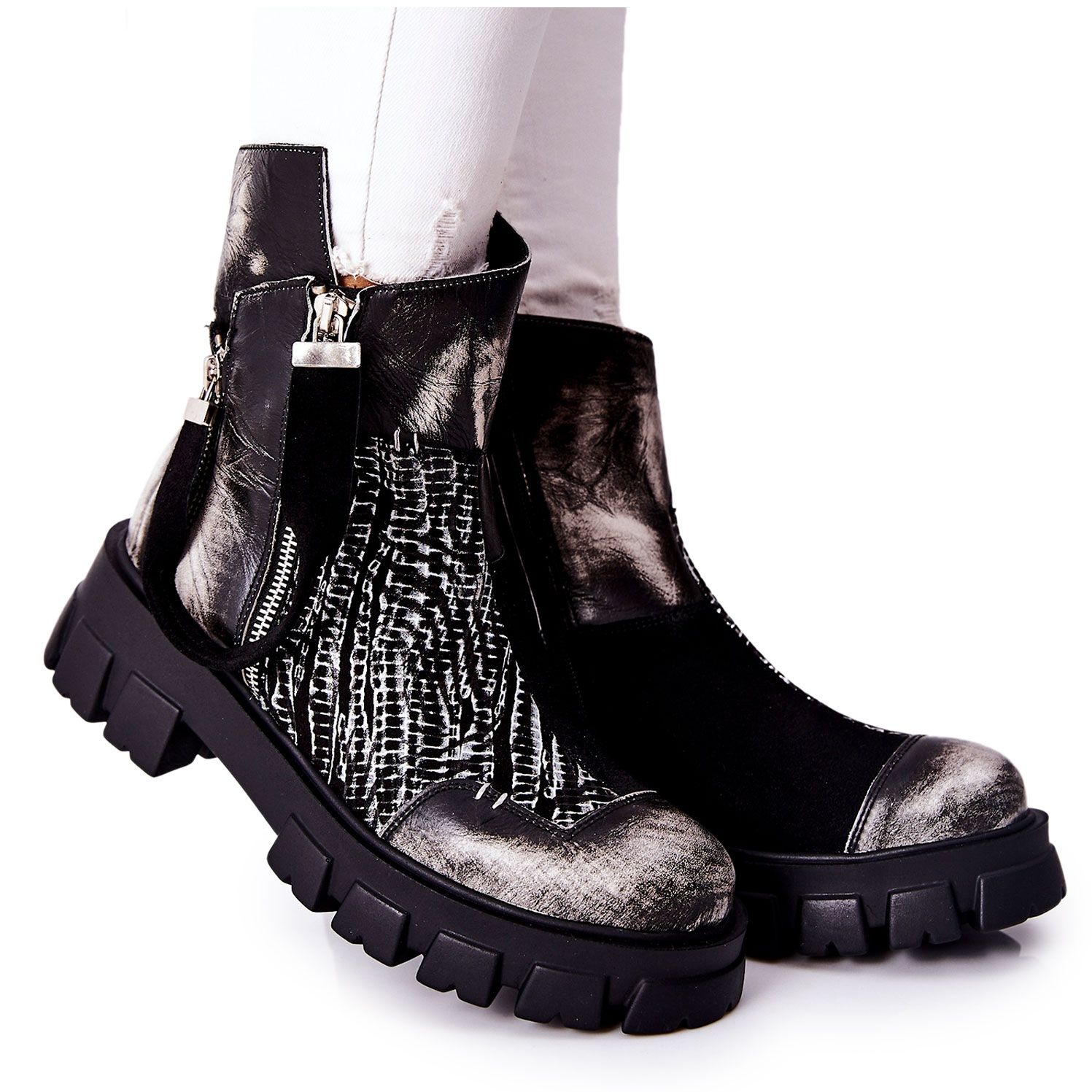Maciejka Botas de couro botas Jodhpur Maciejka Preto-Branco 05137-21