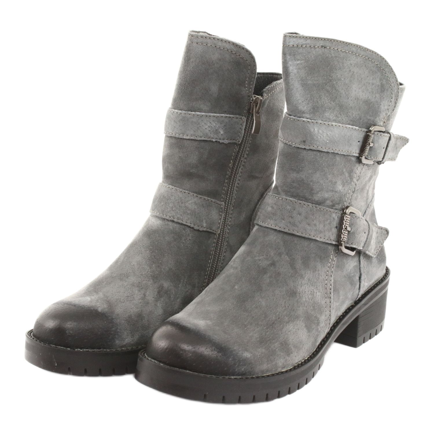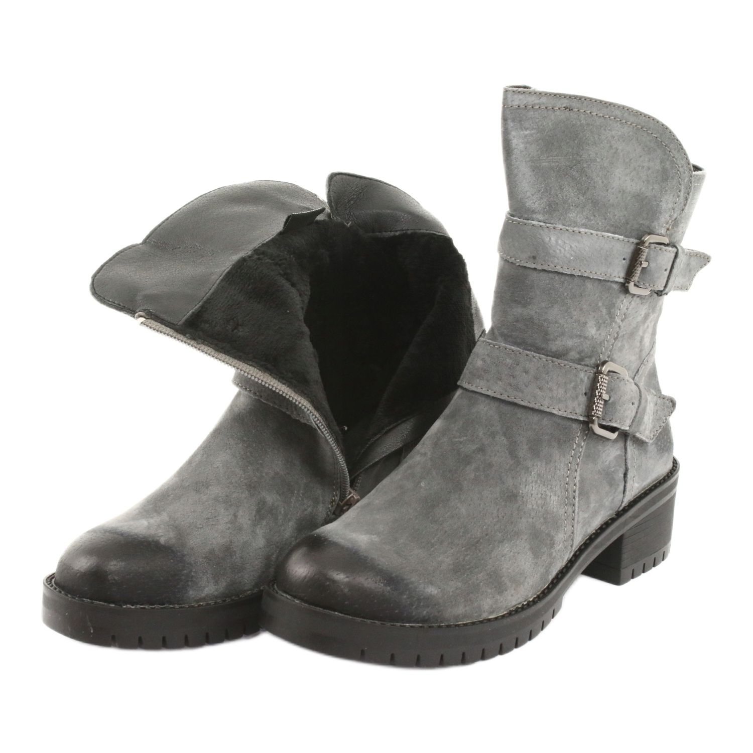 Descubra a elegância e o conforto oferecidos pelos botins de camurça M.Daszyński em tom de cinza, modelo 161. Estes sapatos exclusivos foram pensados para mulheres que desejam aliar um look fashion ao conforto nos dias frios.