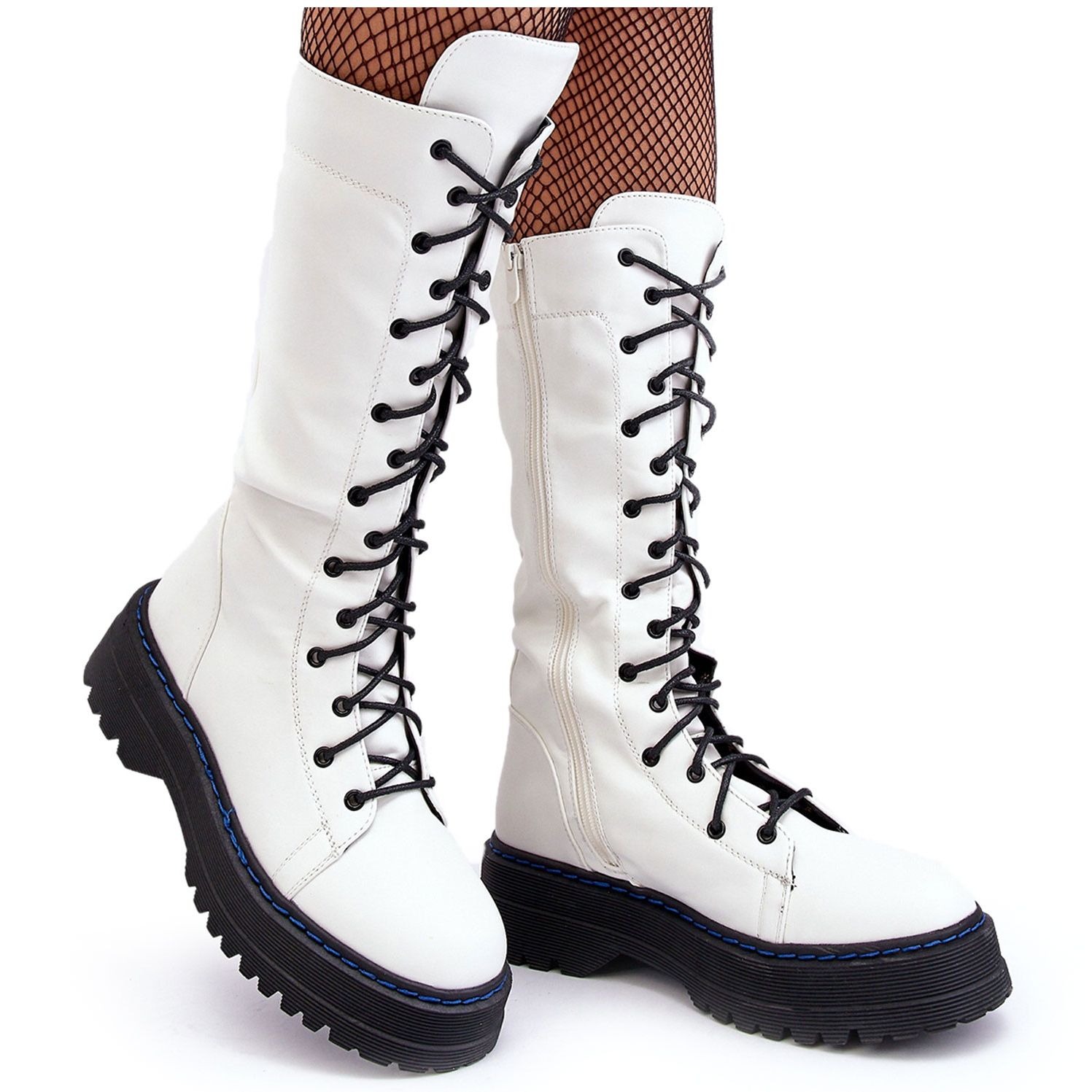 Detalhes: Sweet Shoes Botas de couro com cadarço e zíper, Zoraida Branca branco