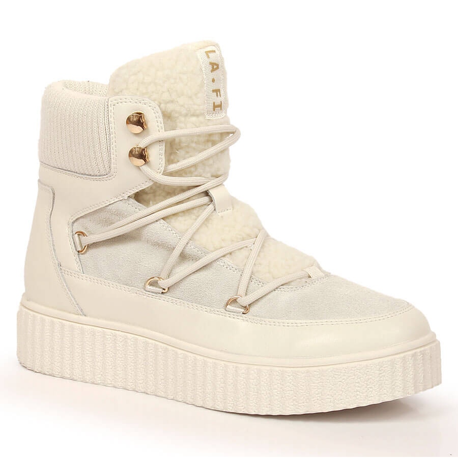 Graças ao fecho com atacadores, pode ajustar o calçado ao pé, o que aumenta ainda mais o conforto de utilização. Apesar da falta de salto, as botas mantêm um visual elegante e sua cor bege claro cabe facilmente em qualquer guarda-roupa.