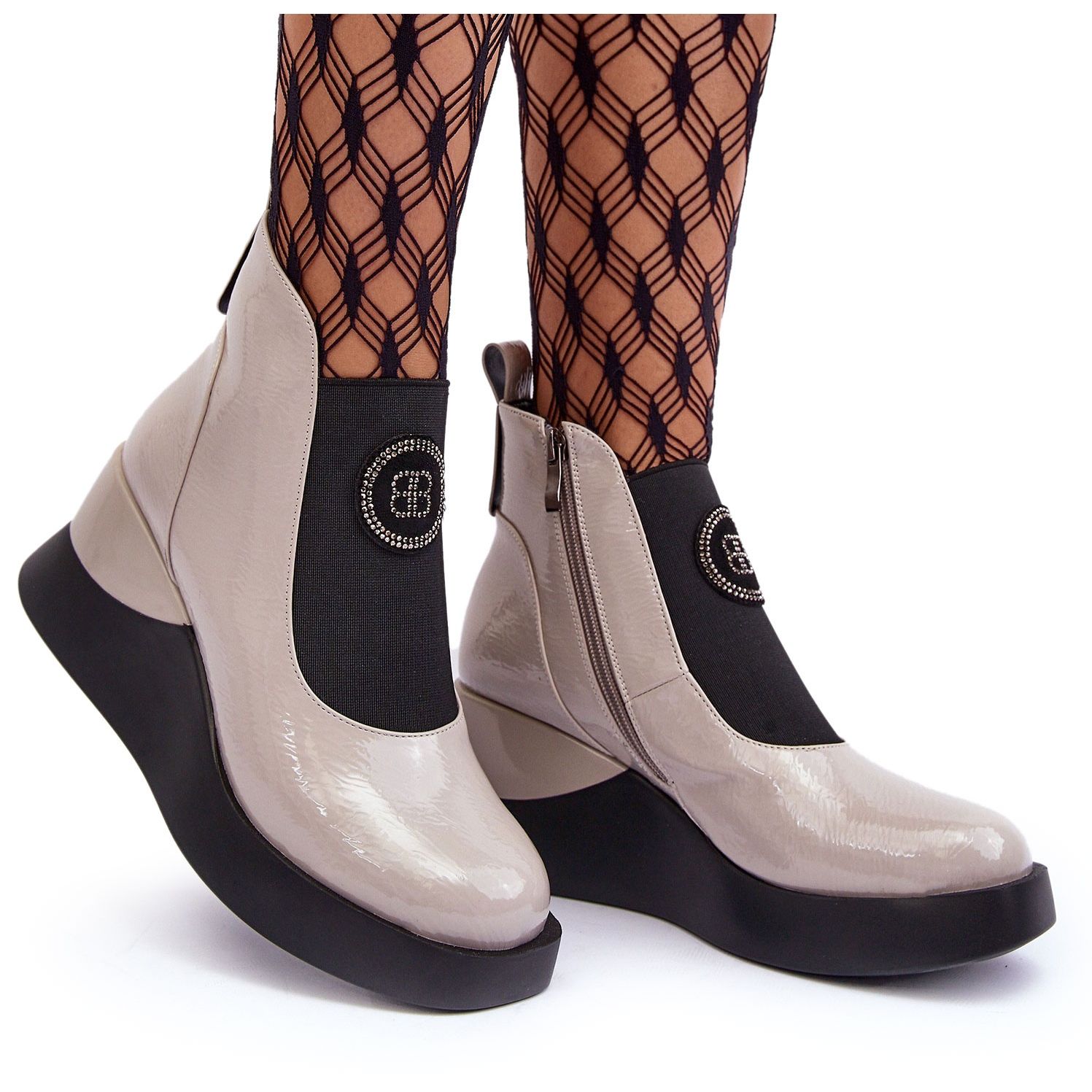 Detalhes: Botas de couro com cunha S.Barski MR870-22 Cinza claro