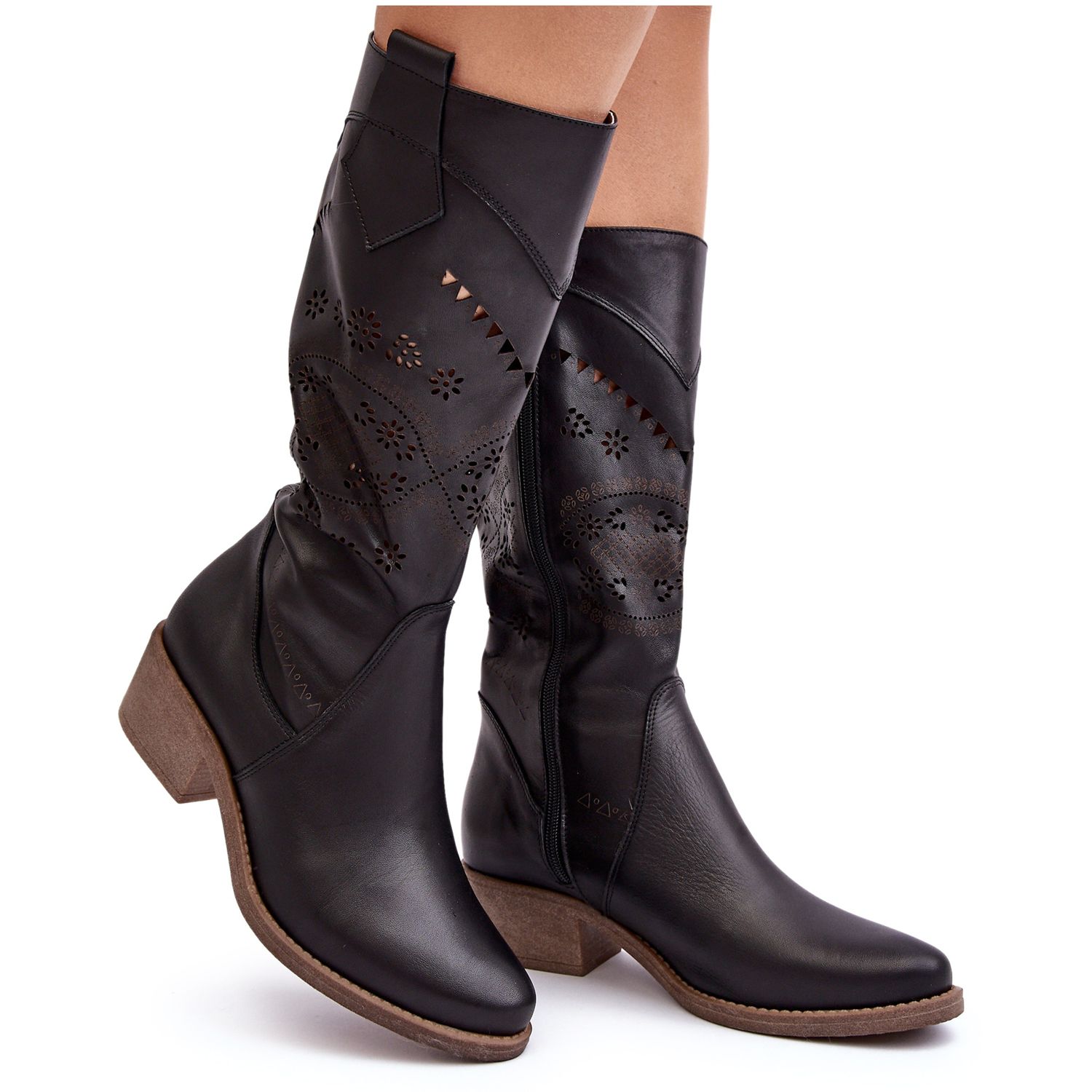 Botas de couro com um padrão de trabalho aberto Sierra - preto